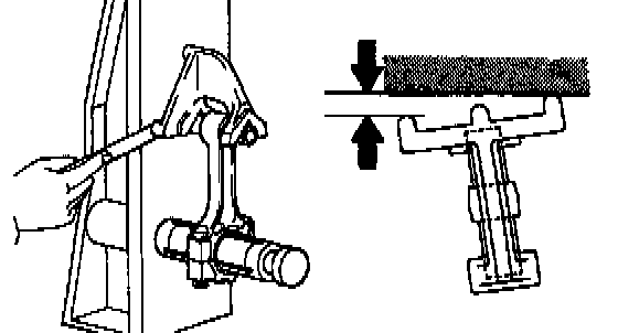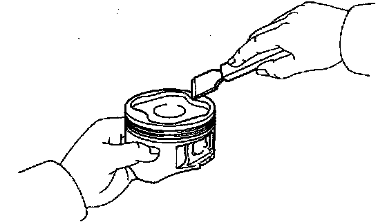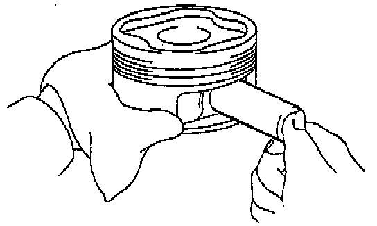 e. Check the piston pin fit at normal room temperature. Coat the piston pin with engine oil, and push it into the connecting rod with your thumb.