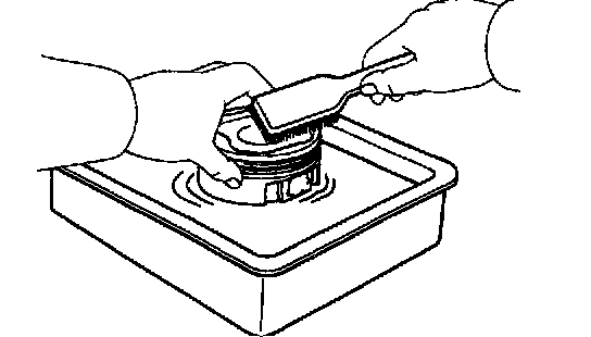 c. Using solvent and a brush, thoroughly clean the piston.