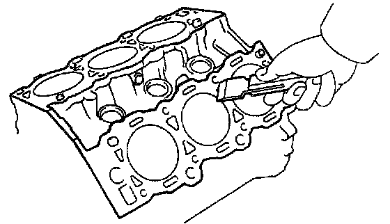 Using a gasket scraper, remove all the gasket material from the top surface of the cylinder block.