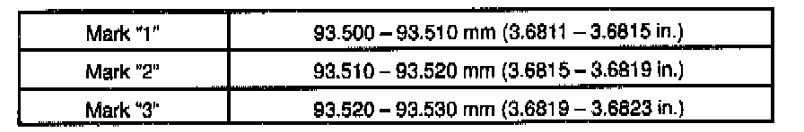 O/S 0.50: 93.856 - 93.886 mm (3.6951 - 3.6963 inch)
