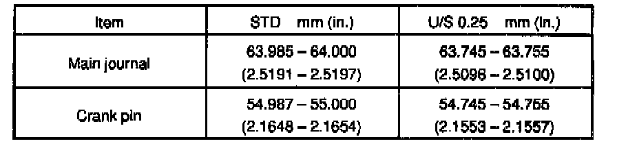 Standard oil clearance: 0.005 - 0.011 mm (0.0002 - 0.0004 inch)