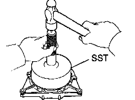 a. Using Special Service Tool (SST) and a press, press out the bushing.