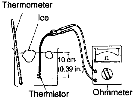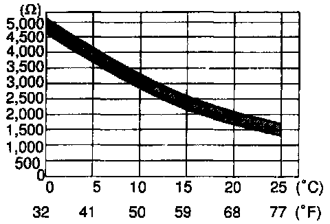 INSPECT THERMISTOR RESISTANCEa. Place the thermistor in cold water and while changing the temperature of the water, measure resistance at the connector and at the same time, measure temperature of the water with a thermometer.