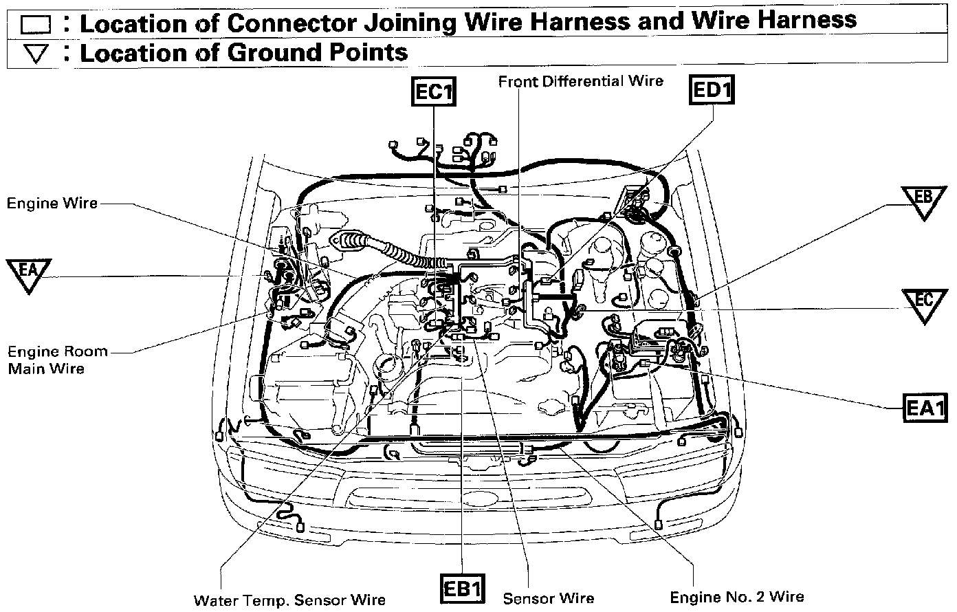 Location Of Connector Joining Wire Harness And Wire Harness Ground Points (Fig 36):