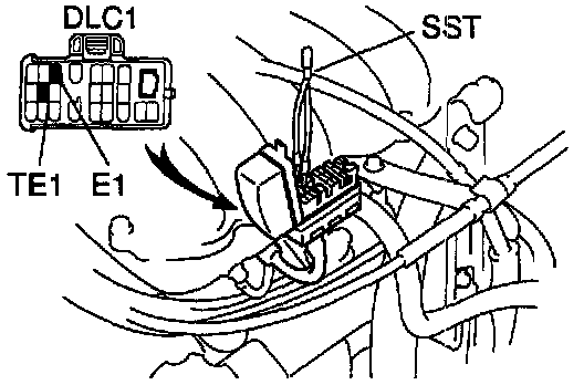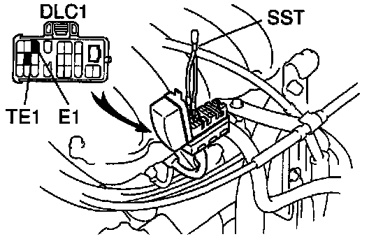 (b) Using SST, connect terminals TE1 and E1 of the DLC1.