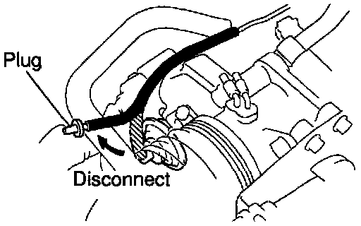 (c) Disconnect the vacuum hose from the throttle opener, and plug the hose end.