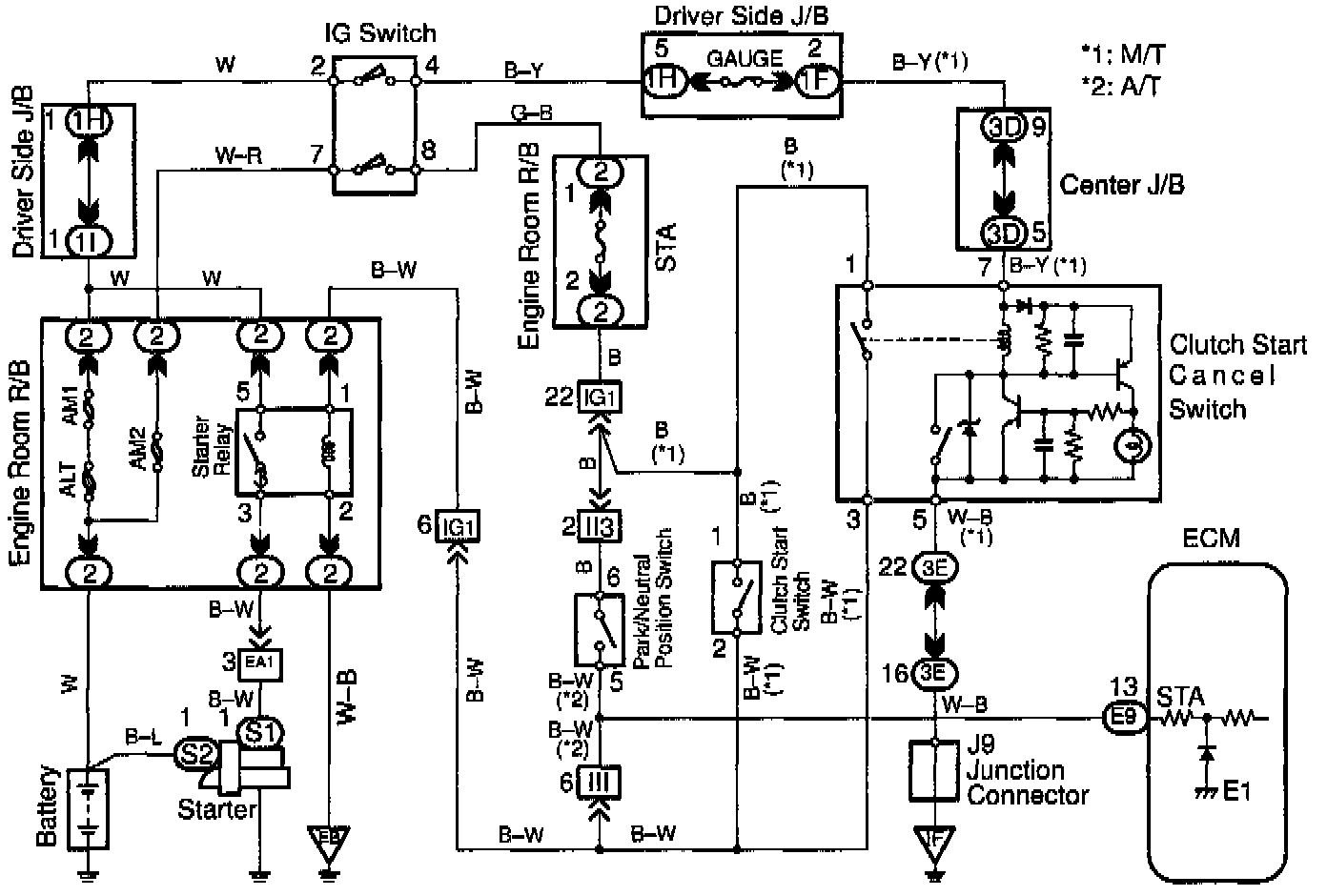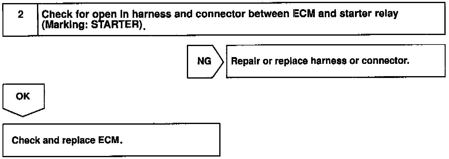 When the engine is cranked, the intake air flow is slow, so fuel vaporization is poor. A rich mixture is therefore necessary in order to achieve good startability. While the engine is being cranked, the battery positive voltage is applied to terminal STA of the ECM. The starter signal is mainly used to increase the fuel injection volume for the starting injection control and after-starter injection control.