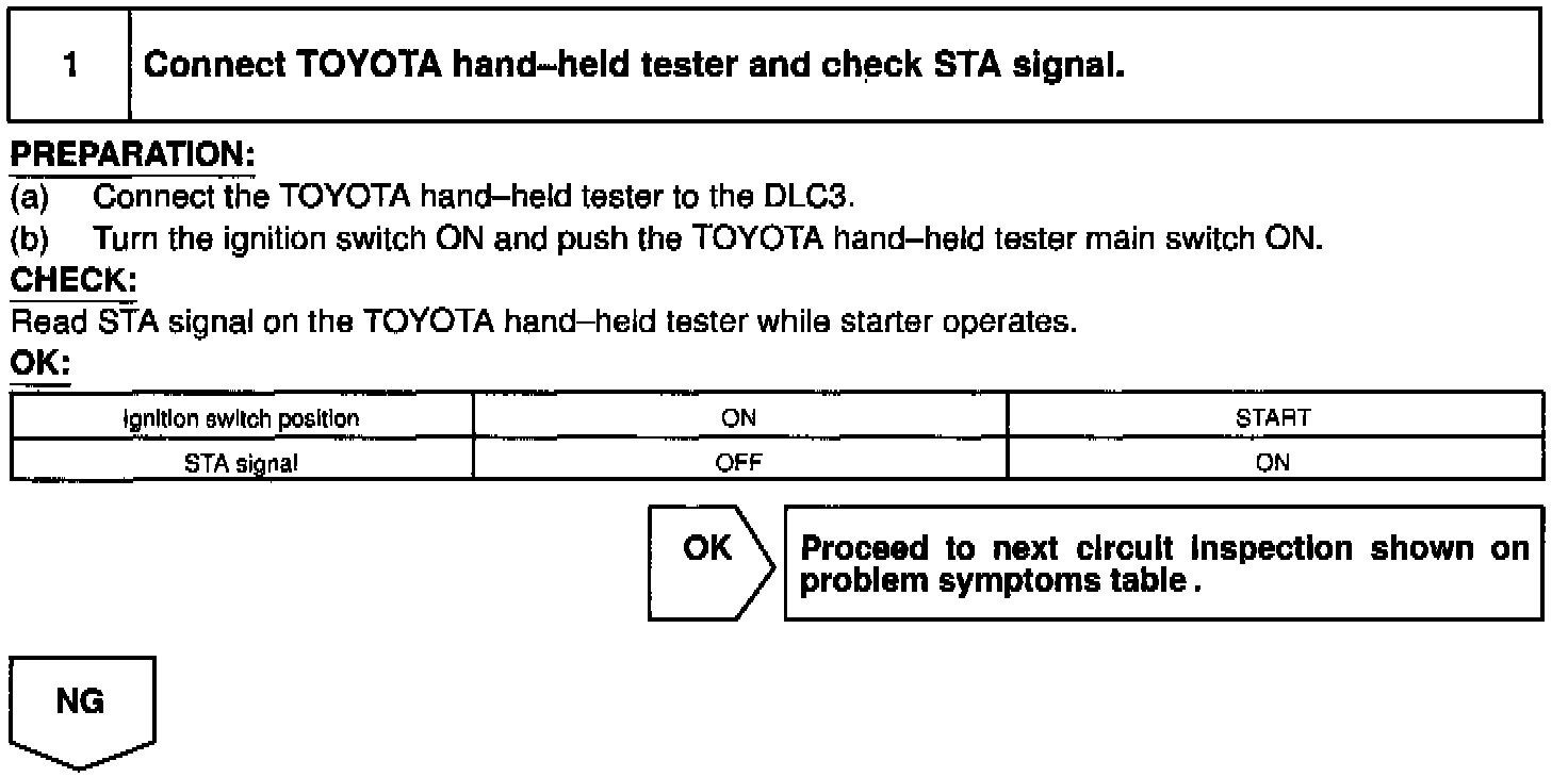 HINT: This diagnostic chart is based on the premise that the engine is cranked normally. If the engine is not cranked, proceed to the problem symptoms table.