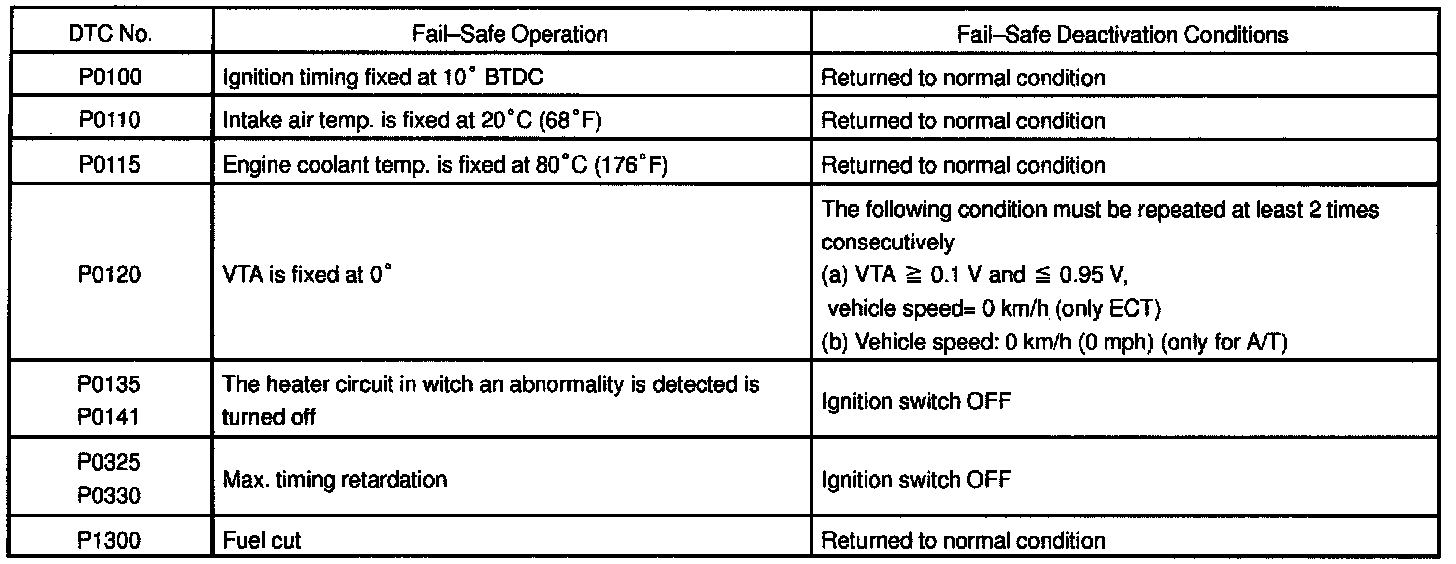 If any of the above codes are recorded, the ECM enters fail-safe mode.