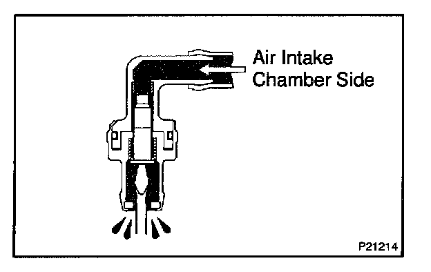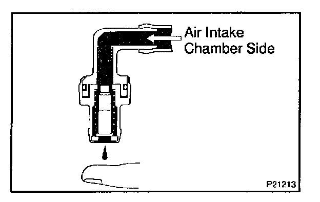 (c) Blow air into the air intake chamber side when lift up the inside valve, and check that there is a strong resistance to air flow.