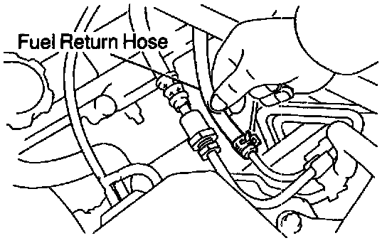 (6) Pinch the fuel return hose. The pressure in high pressure line will rise to approx. 400 kPa (4 kgf/sq. cm, 57 psi). In this state, check to see that there are no leaks from any part of the fuel system.