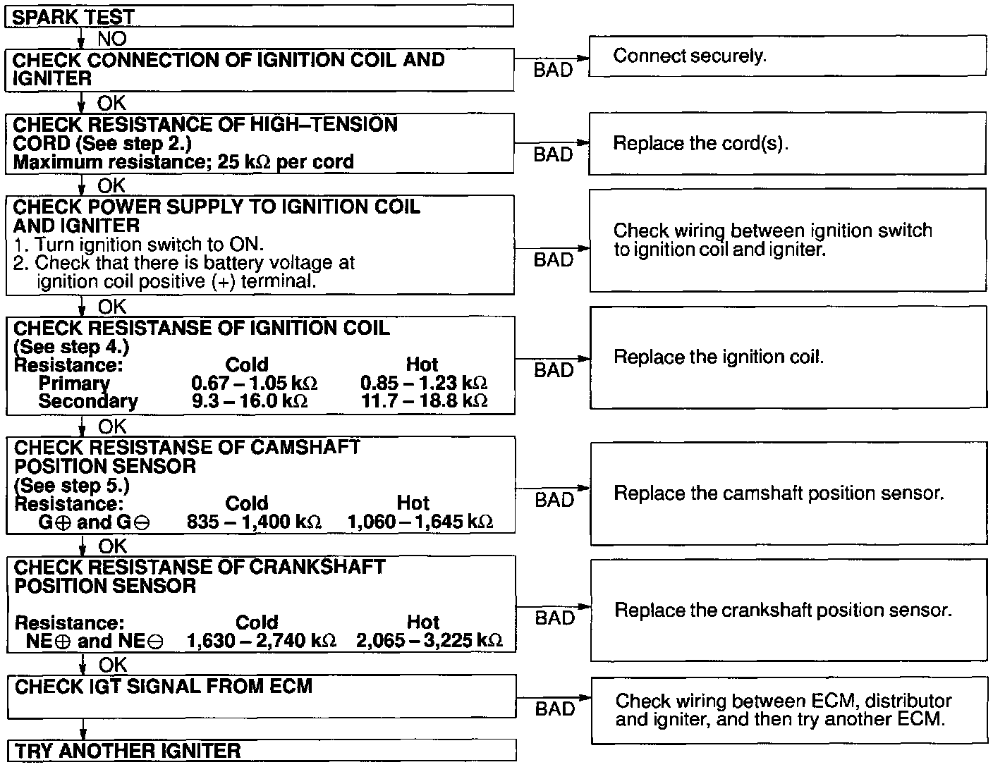 (5) Check if spark occurs while engine is being cranked.