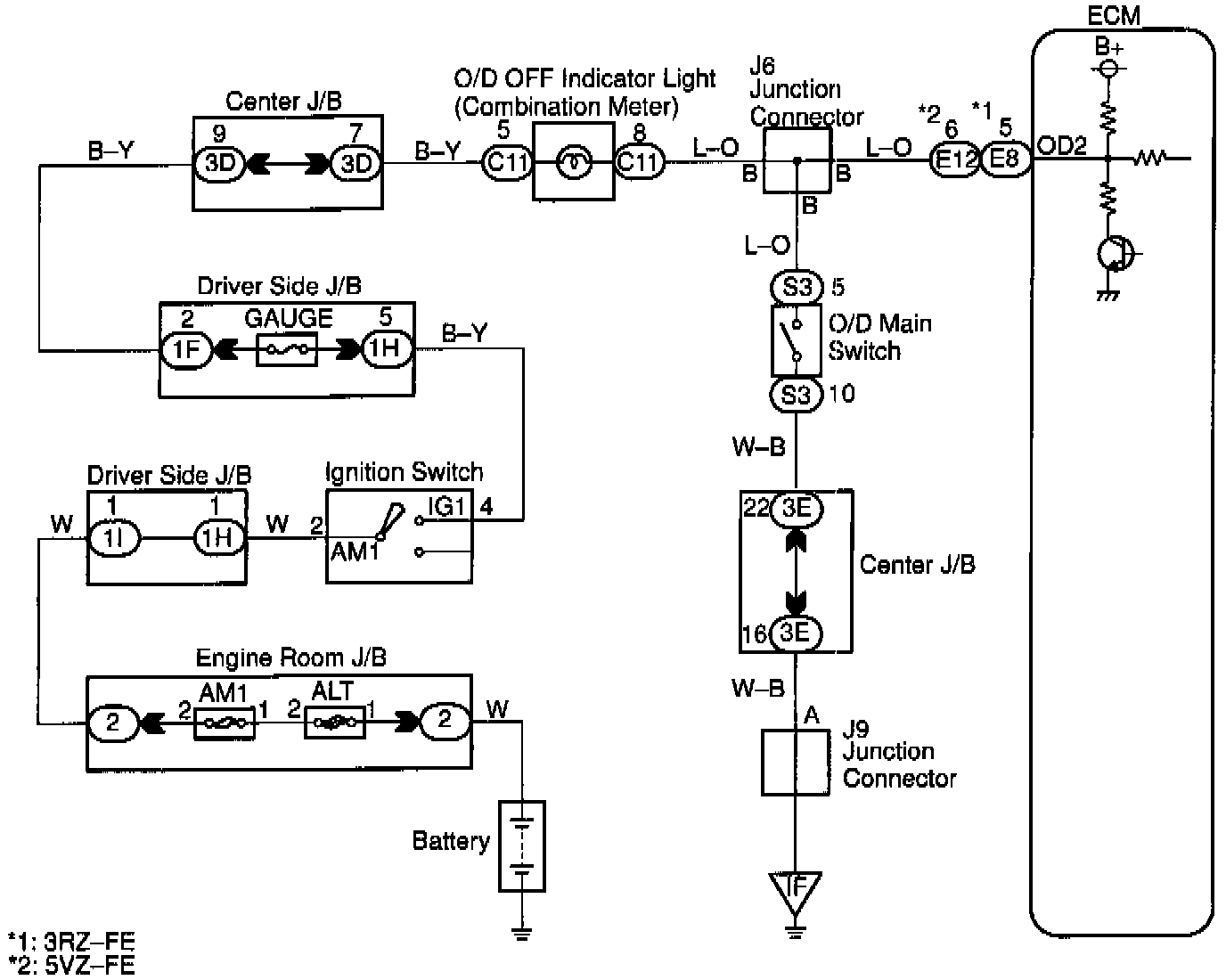 O/D Main Switch & O/D Off Indicator Light Circuit