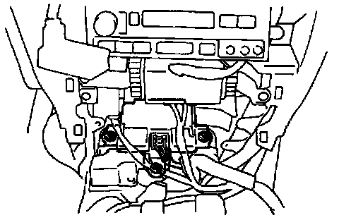 - When installing the airbag sensor assembly, take care that the SRS wiring does not interfere with other parts and is not pinched between other parts.