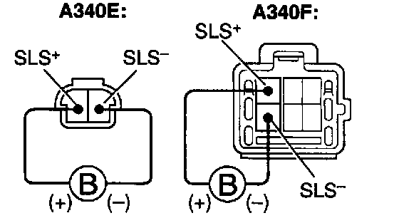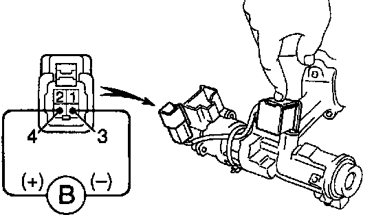 c. Apply battery positive voltage between terminals. Check that operation noise can be heard from the solenoid. If the solenoid dose not operate, replace the solenoid.