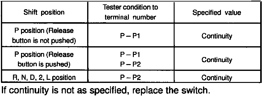 If continuity is not as specified, replace the switch.