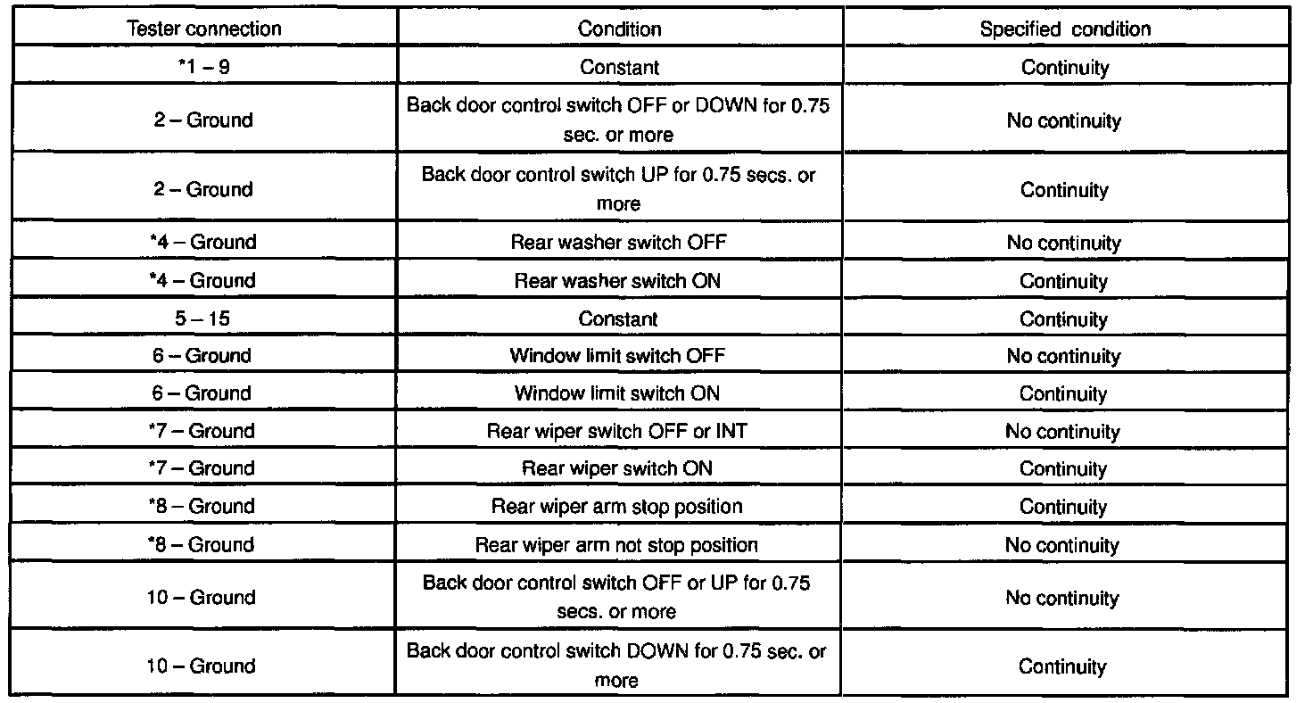 INSPECT BACK DOOR CONTROL RELAY CIRCUIT