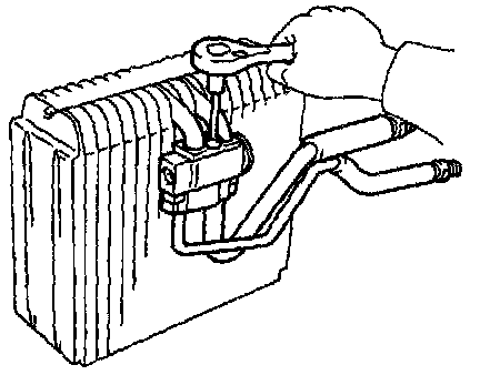 Using a hexagon wrench, remove the 2 bolts and separate the expansion valve and evaporator and tubes.