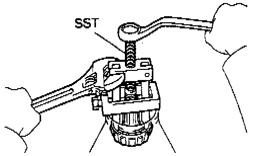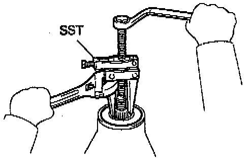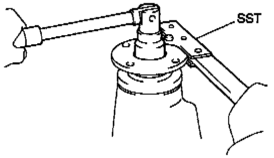 b. Using the SST 09330-00021 to hold the flange, remove the nut.