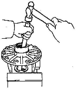 a. Using a brass bar and hammer, remove the front bearing outer race.