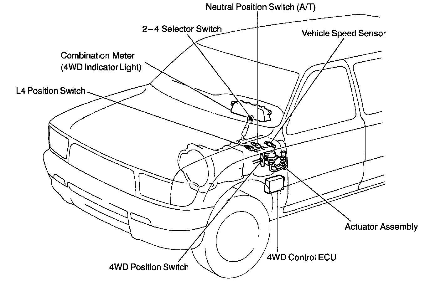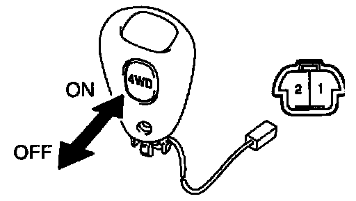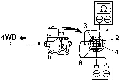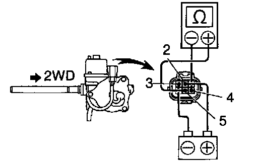 a. Connect lines via a relay as shown in the illustration, then check that the actuator fork shaft moves to 2WD position.