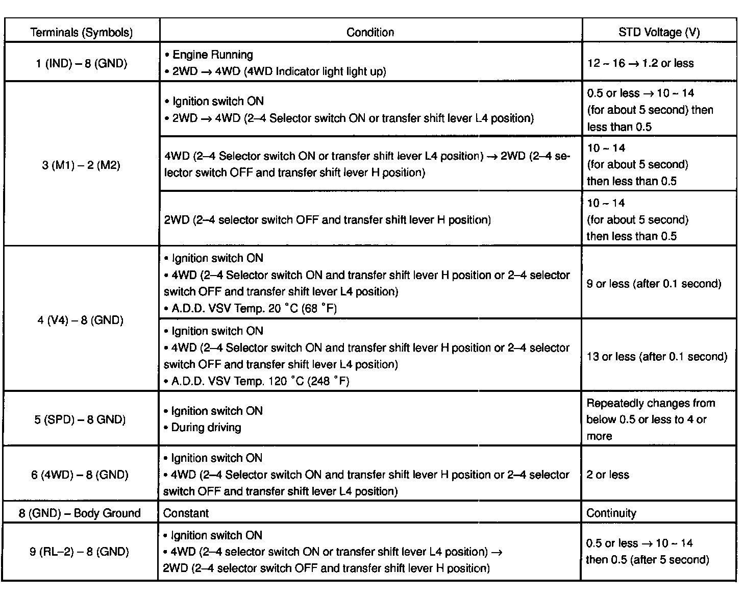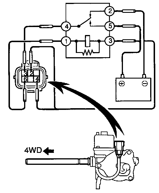 b. Connect lines via a relay as shown in the illustration, then check that the actuator fork shaft moves to 4WD position.