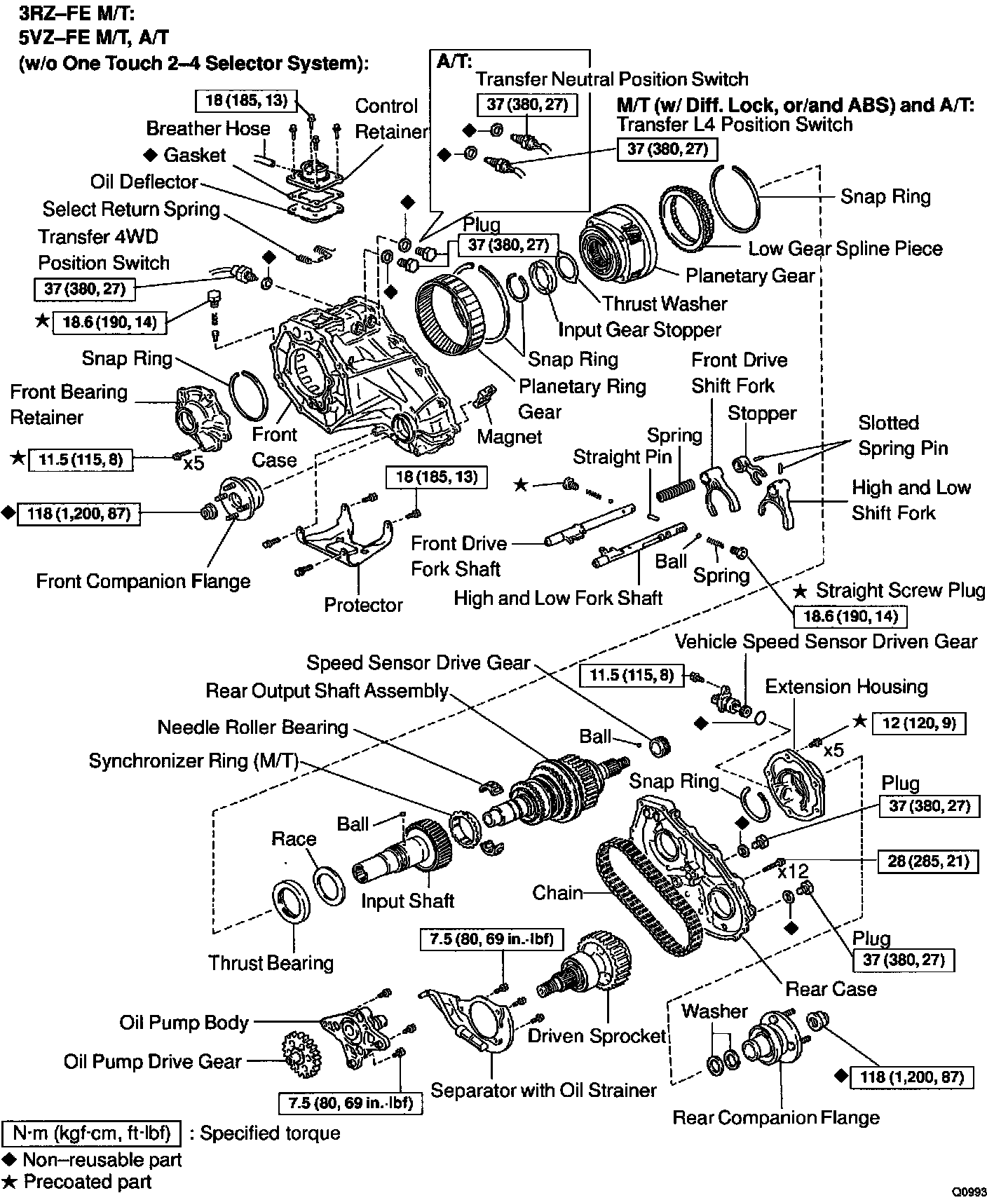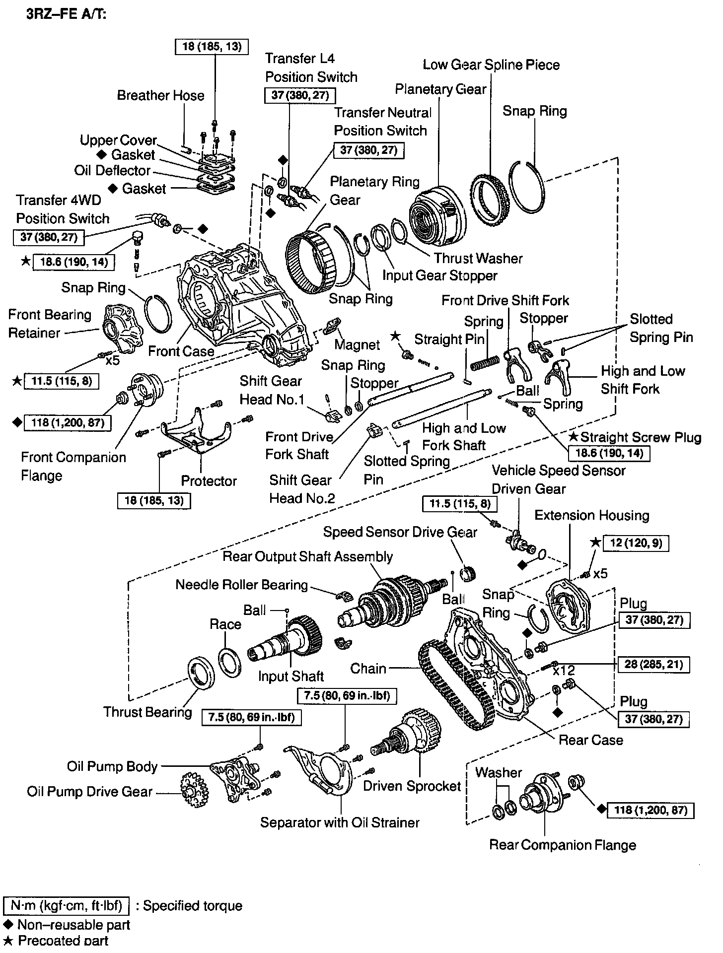 ^ When installing the, pin in the front drive fork shaft, push the shaft towards the rear case and install the pin while the spring is compressed.