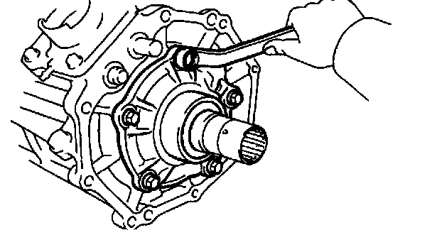 b. Using Special Service Tool (SST) to hold the flange, remove the companion flange lock nut.