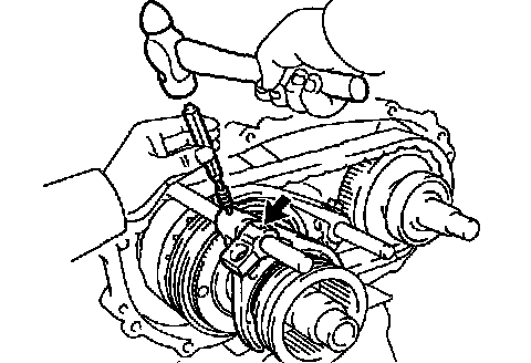 a. Using a chisel and hammer, loosen the staked part of the nut.