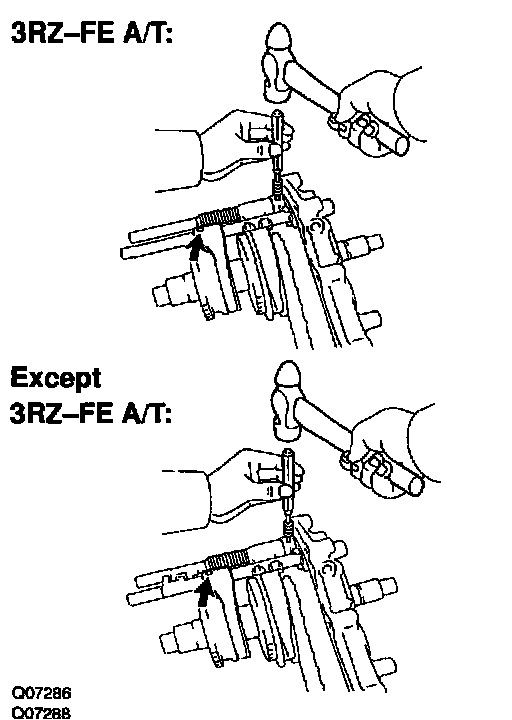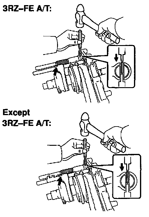 a. Using a pin punch and hammer, drive out the 2 slotted spring pins.