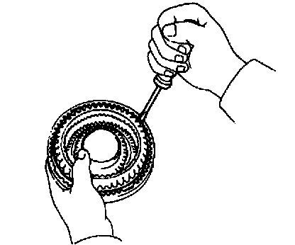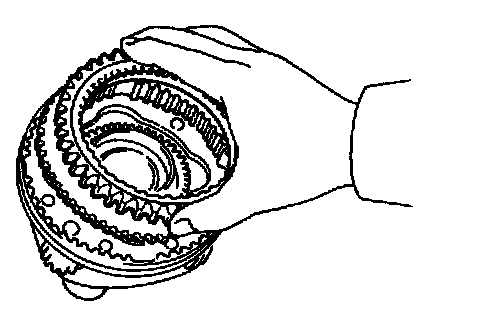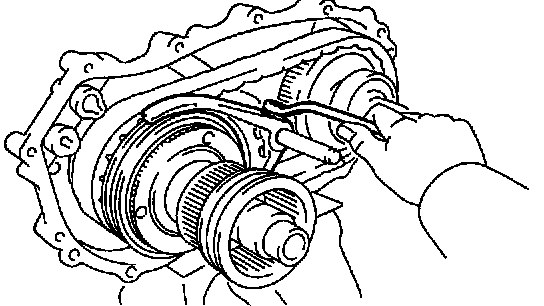 Be sure the end gap of the snap ring is not aligned with cutout portion of the planetary carrier.