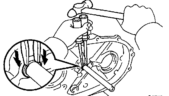 b. Using a plastic hammer, tap the front bearing retainer and remove it.
