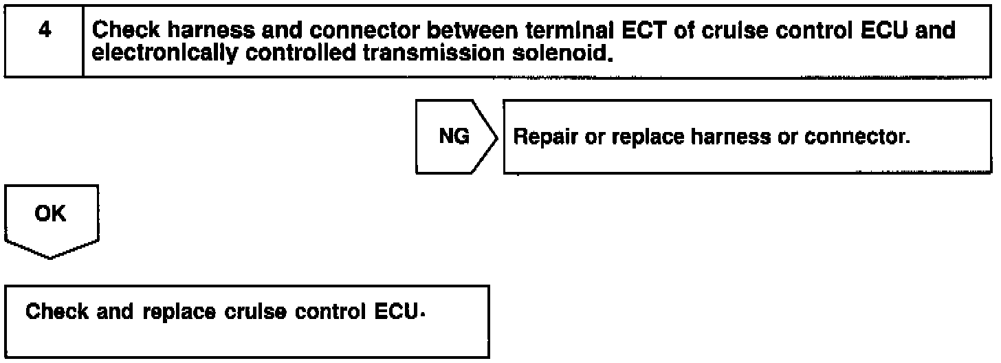 Terminal ECT of the cruise control ECU detects the shift change signal (output to electronically controlled transmission No. 2 solenoid) from the ECM.