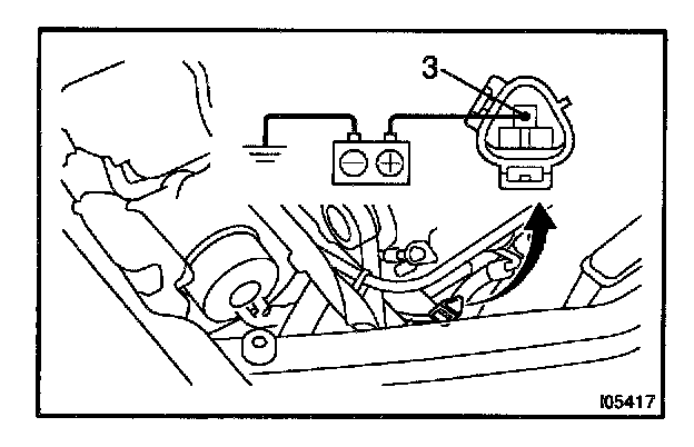 b. Connect the positive (+) lead from the battery to terminal 3 and the negative (-) lead to the body ground.