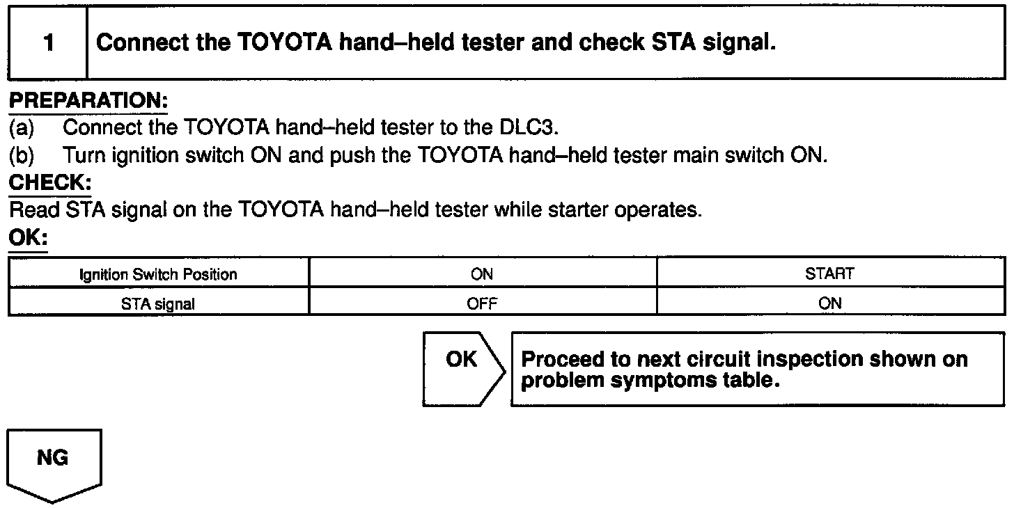 HINT: This diagnostic chart is based on the premise that the engine is cranked normally. If the engine is not cranked, proceed to the problem symptoms table.