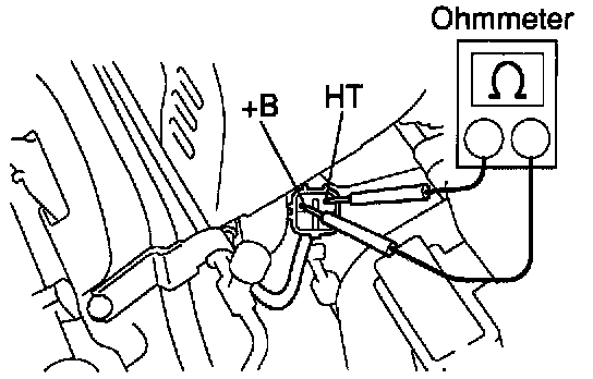 (b) Using an ohmmeter, measure the resistance between terminals +B and HT.