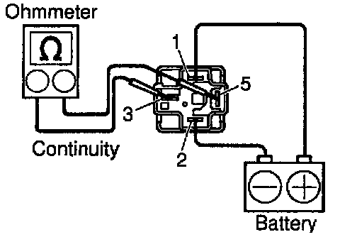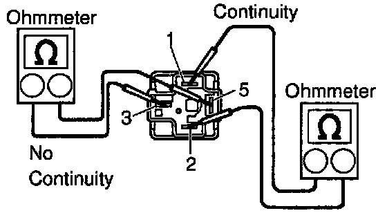 (b) Using an ohmmeter, check that there is continuity between terminals 3 and 5. If there is no continuity, replace the relay.