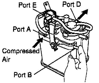(c) While holding port B and port D closed, blow air (1.76 kPa, 18 gf/sq.cm, 0.26 psi) into port A and check that air does not flow from port C.