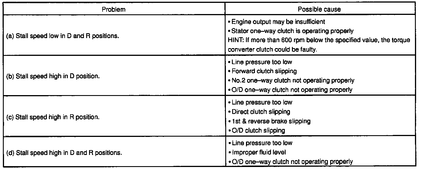 The object of this test is to check the overall performance of the transaxle and engine by measuring the stall speeds in the D and R positions.