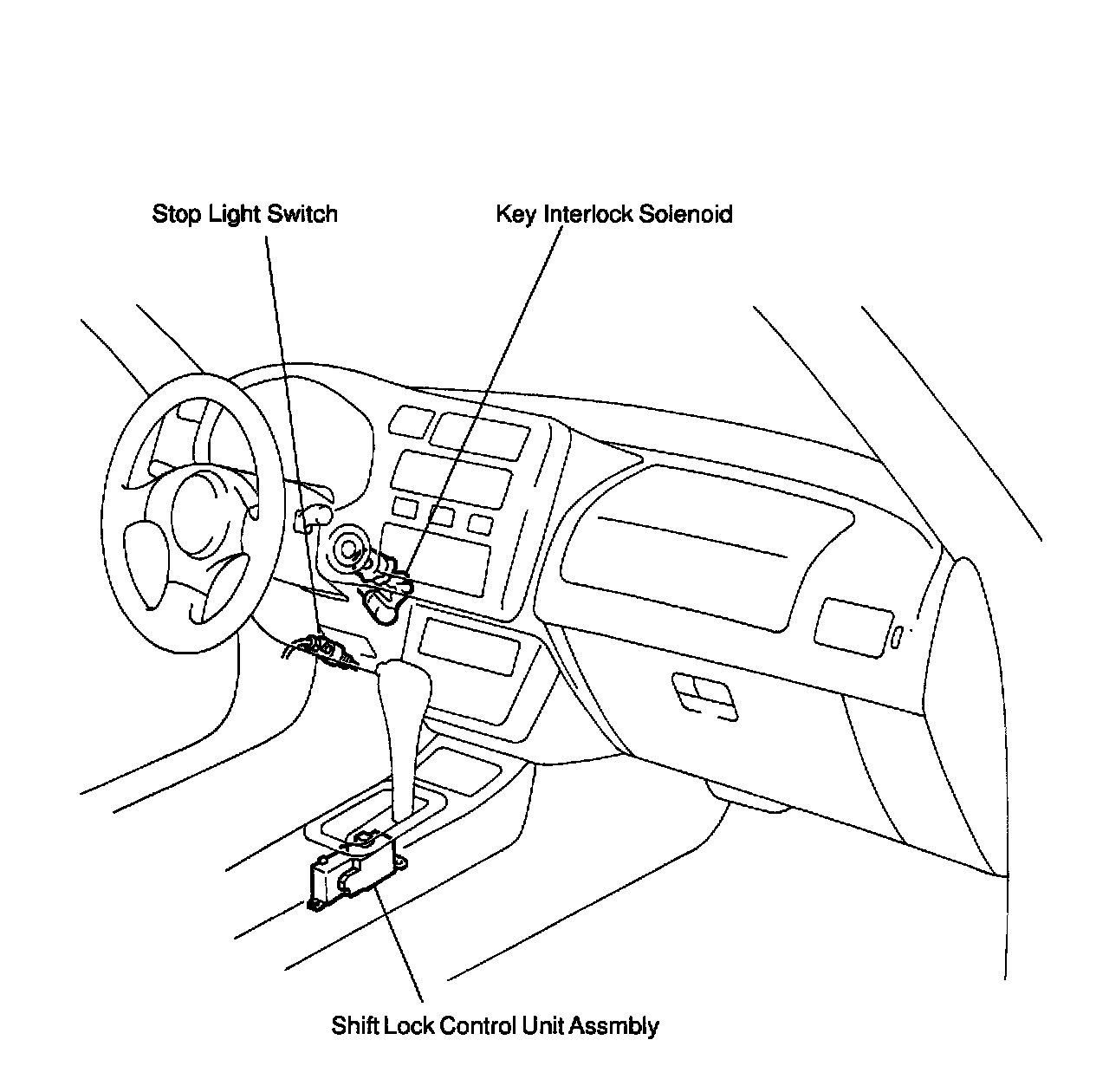 HINT: Do not disconnect the shift lock control unit assembly connector.