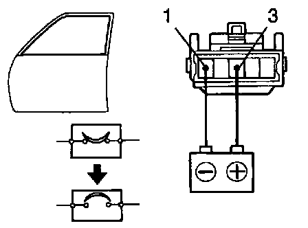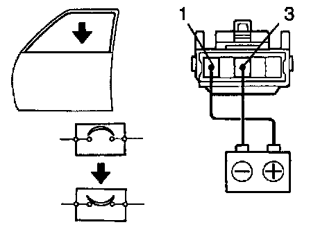 b. Connect the positive (+) lead from the battery to terminal 3 and the negative (-) lead to terminal on the wire harness side connector, and raise the window to full closed position.