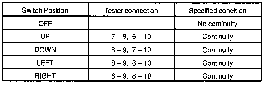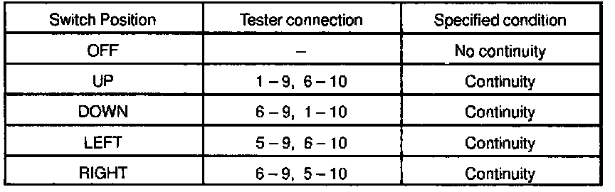 INSPECT MIRROR CONTROL SWITCH CONTINUITY