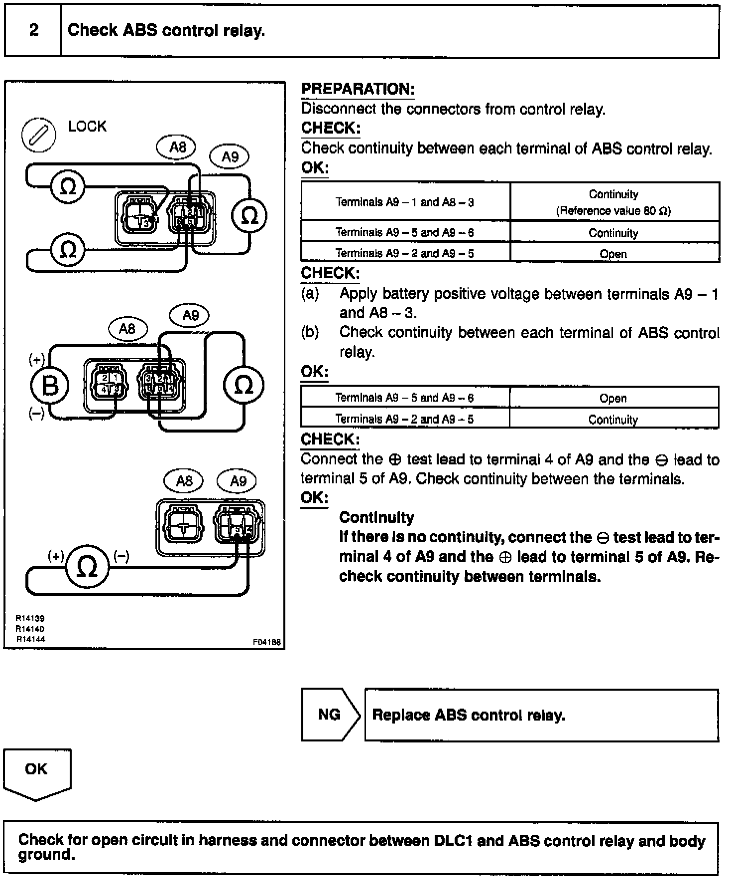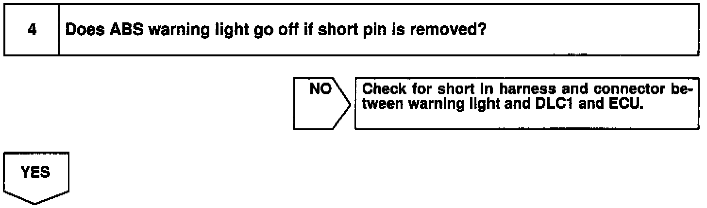 If the ECU detects trouble, it lights the ABS warning light while at the same time prohibiting ABS control. At this time, the ECU records a DTC in memory.