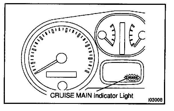 (2) Check that the CRUISE MAIN indicator light comes on when the cruise control main switch is turned ON, and that the indicator light goes off when the main switch is turned OFF.