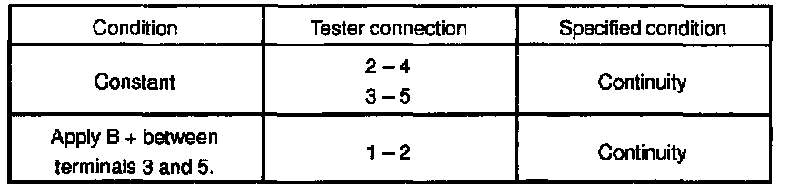 If continuity is not as specified, replace the relay.