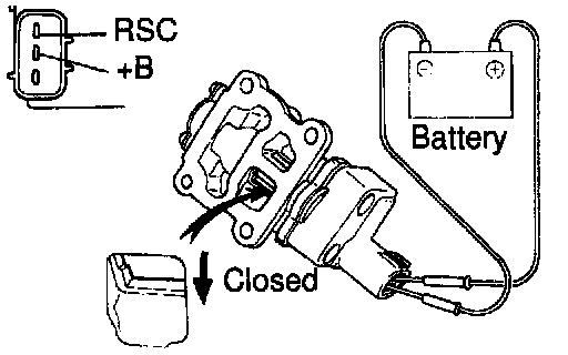(a) Connect the positive (+) lead from the battery to terminal +B and negative (-) lead to terminal RSC, and check that the valve is closed.
