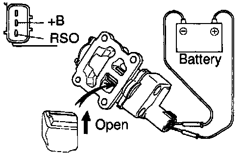 (b) Connect the positive (+) lead from the battery to terminal +B and negative (-) lead to terminal RSO, and check that the valve is open.