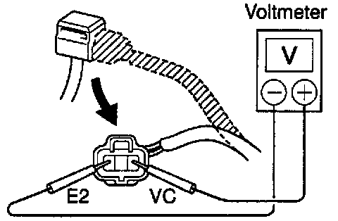 (c) Using a voltmeter measure the voltage between connector terminals VC and E2 of the wiring harness side.