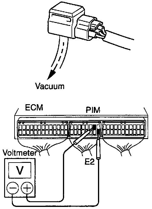 (c) Connect a voltmeter to terminals PIM and E2 of the ECM, and measure the output voltage under ambient atmospheric pressure.