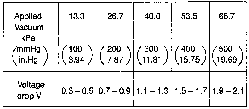 (d) Apply vacuum to the MAP sensor in 13.3 kPa (100 mmHg 3.94 in.Hg) segments to 66.7 kPa (500 mmHg, 19.69 in.Hg).